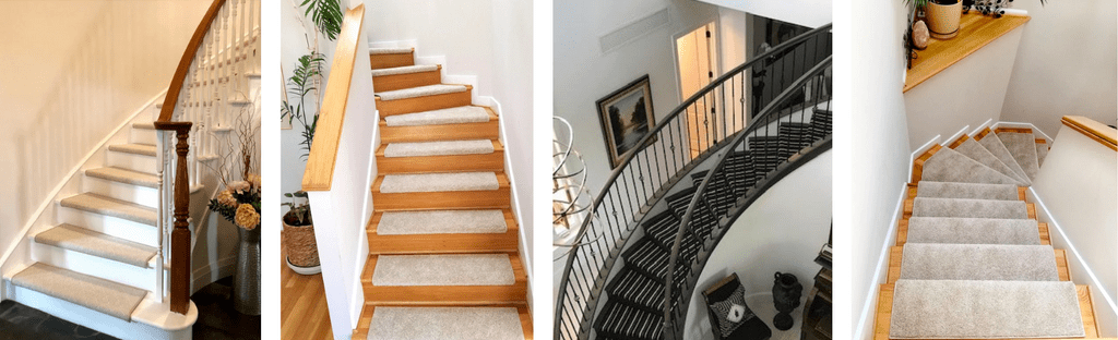 If you’re looking to add carpet stair treads to your curved staircase, you will need curved stair treads. And, by that I mean you will need stair treads to fit your curved stairs.