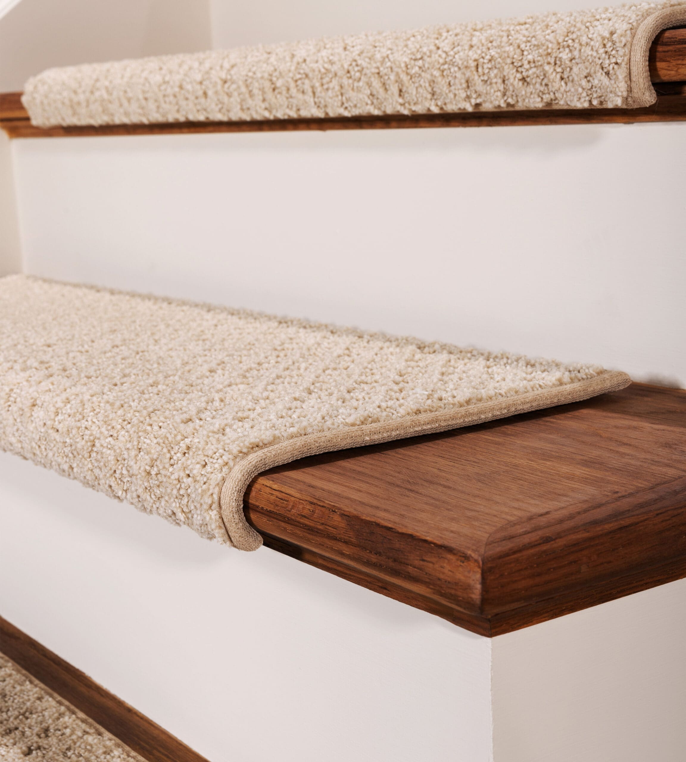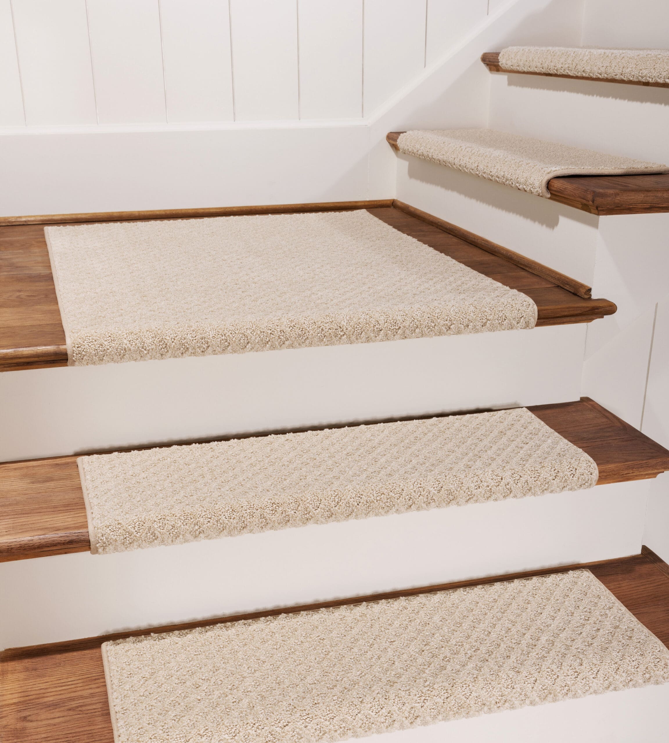 I rarely write review but this company deserves one. The stair treads transformed my stairs and was a breeze to install. I have laminate on my stairs and to put a runner on them would require a pad, specialized staple gun, glue and other tools. Also, there would be a small gap to collect pet hairs and dust. This would also damage my stairs. This was the perfect solution. Thanks again!